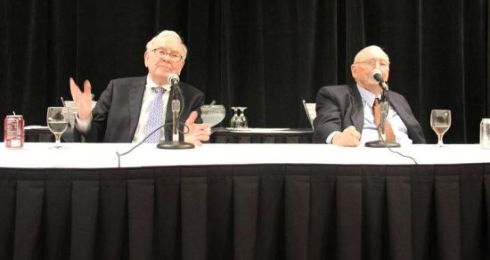 圖為巴菲特和查理-芒格在記者會上